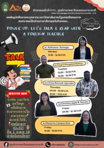 The Center for Languages and Intercultural Communication invites all students and staff to join “Power Up: Let’s Talk and Read with a Foreign Teacher”—a fun activity where you can practice English conversation or improve your English reading skills with a foreign instructor.