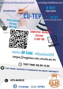 #CLIC NSTRU #ศูนย์ภาษาและวัฒนธรรมนานาชาติ มรภ.นครศรีธรรมราช #CU-TEP #TOEFL ITP # OOPT #ARITNSTRU
