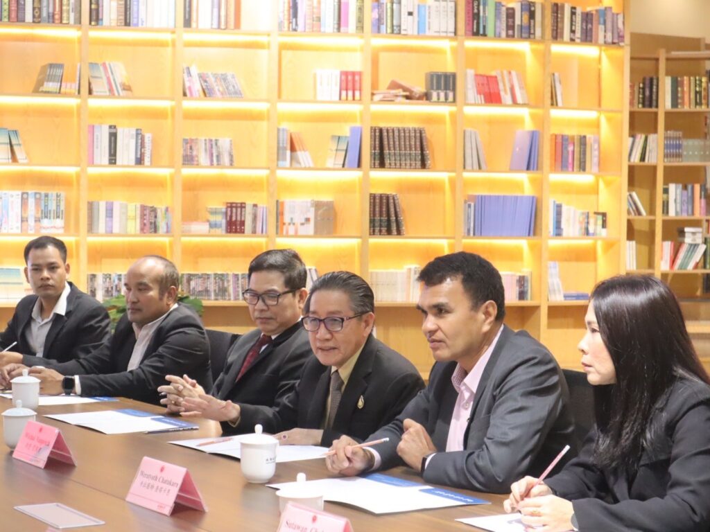 The signing ceremony was led by Assoc. Prof. Dr. Wichai Waenpetch, President of the University Council, together with Dr. Sompong Raksatham, Acting President; Assoc. Prof. Dr. Weerayut Chatakan, Vice President for Academic Affairs and Educational Innovation; and Asst. Prof. Dr. Surin Thongthot, Dean of the Faculty of Humanities and Social Sciences. The representatives signed the MOU with Prof. Dr. Wang Qingyuan, President of Chengdu University, alongside Prof. Peng Xiaolin, Vice President; Prof. Dr. Du Jie, Director of the Office of International Relations; Prof. Dr. Tan Xiaoling, Dean of the Faculty of Literature and Communication; Assoc. Prof. Dr. Yang Xi, Deputy Director of the Office of International Relations; and Prof. Chaphiporn Kiattokachatharn, Head of the China-Thailand Cooperation and Exchange Center.