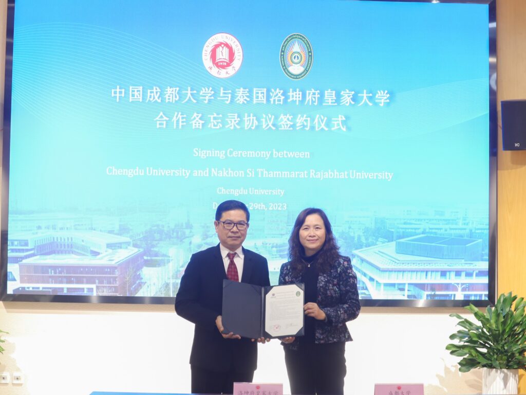 On December 29, 2023, Nakhon Si Thammarat Rajabhat University (NSTRU) signed a Memorandum of Understanding (MOU) with Chengdu University, People’s Republic of China, to establish a Chinese Studies Center and develop a new dual-degree program in Thai-Chinese Studies.