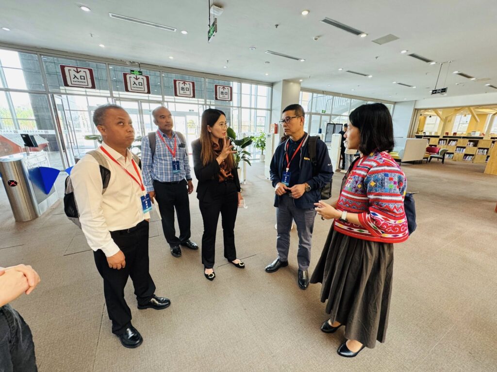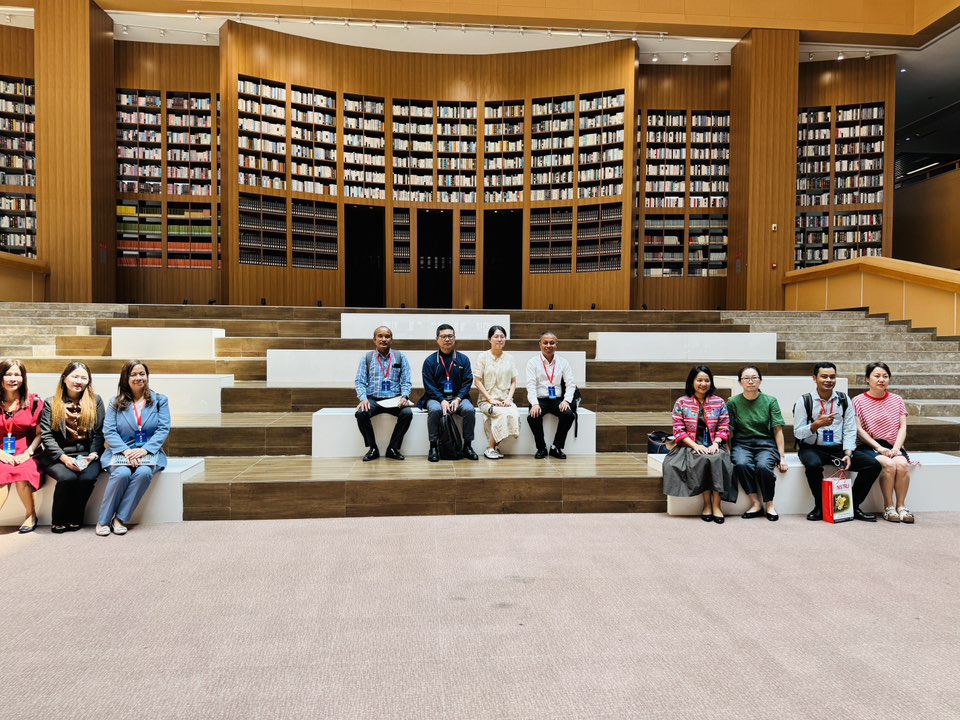 The delegation was warmly welcomed by the Deputy Secretary of the Communist Party Committee of Chengdu University Library. The Chengdu University Library is an impressive academic resource center, covering more than 40,000 square meters across 10 floors, housing over 2 million printed books and 140 million e-books. It serves more than 27,000 students and welcomes over 3,000 external users and international visitors each month.