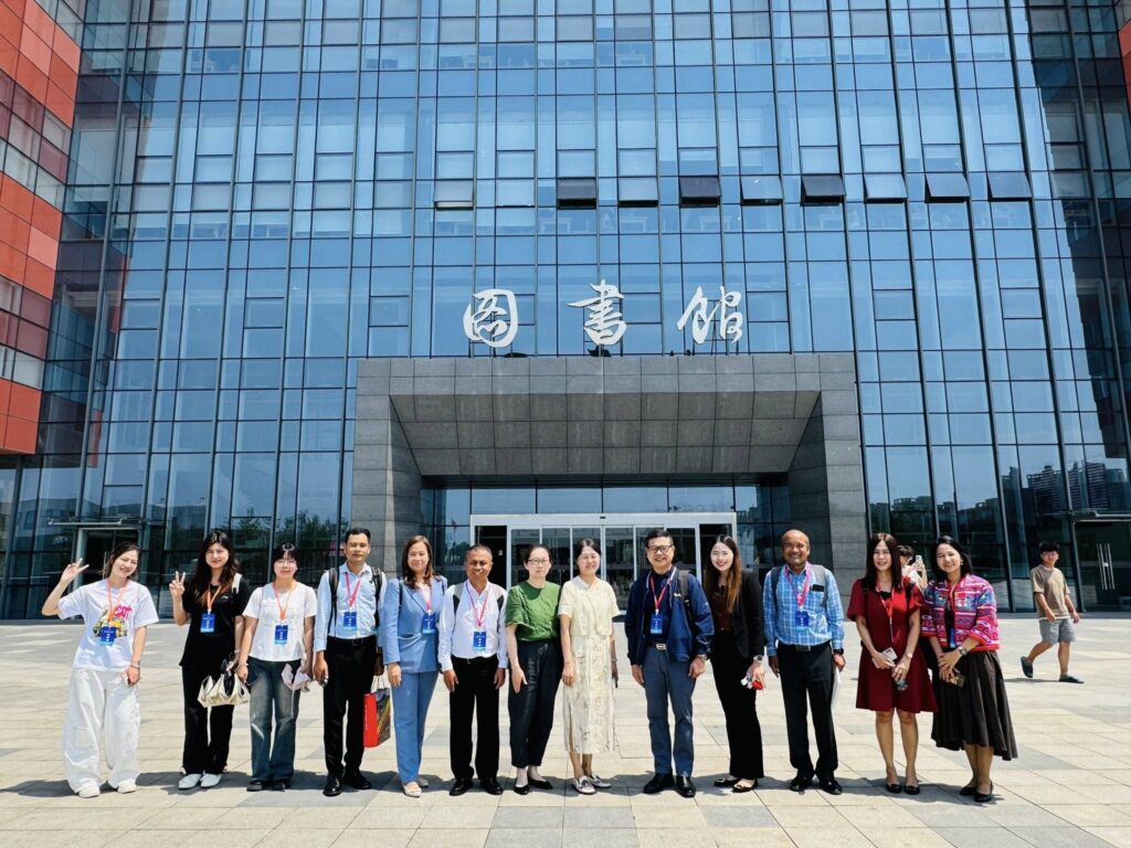 On June 12, 2025, Dr. Sompong Raksathum, Acting President of Nakhon Si Thammarat Rajabhat University (NSTRU), together with Asst. Prof. Dr. Somrak Rodcharoen, Vice President for Research and Information Technology, Asst. Prof. Dr. Surin Thongthot, Dean of the Faculty of Humanities and Social Sciences, deputy deans, the deputy director of the Office of Academic Resources and Information Technology, and staff members from the Division of International Strategy and Relations, visited and exchanged knowledge on library management practices at Chengdu University, People’s Republic of China.