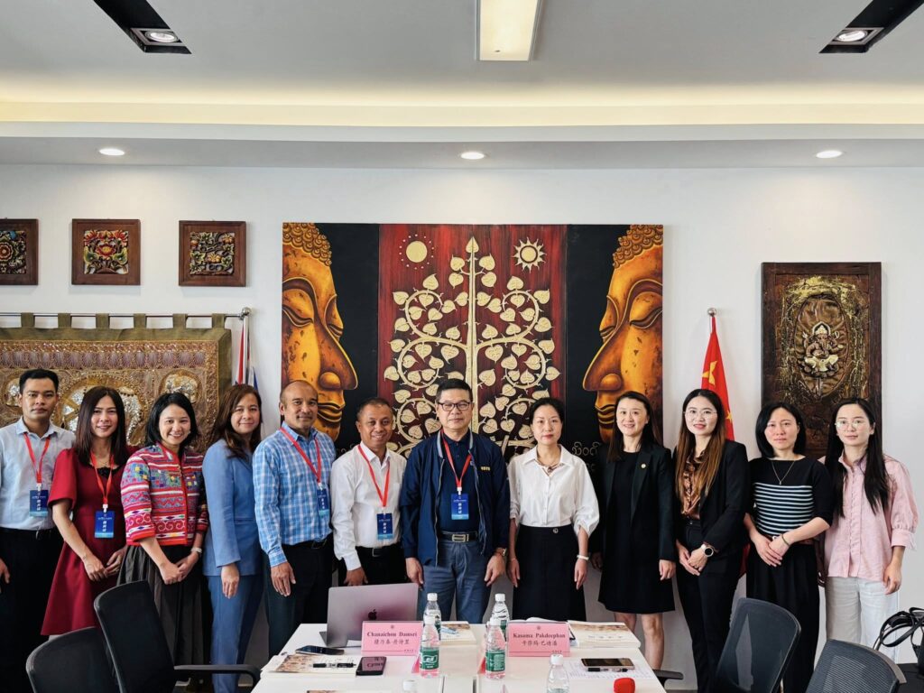 The Chengdu University delegation was led by Prof. Dr. Bai Yang, Dean of the College of Foreign Languages and Culture; Prof. Dr. Yang Xi, Deputy Dean of the College of Foreign Languages and Culture; Dr. Zhan Jingyi, Head of the International Department of the same college; and Ms. Jiratchaya Namwong, Lecturer in the Thai Studies Department.