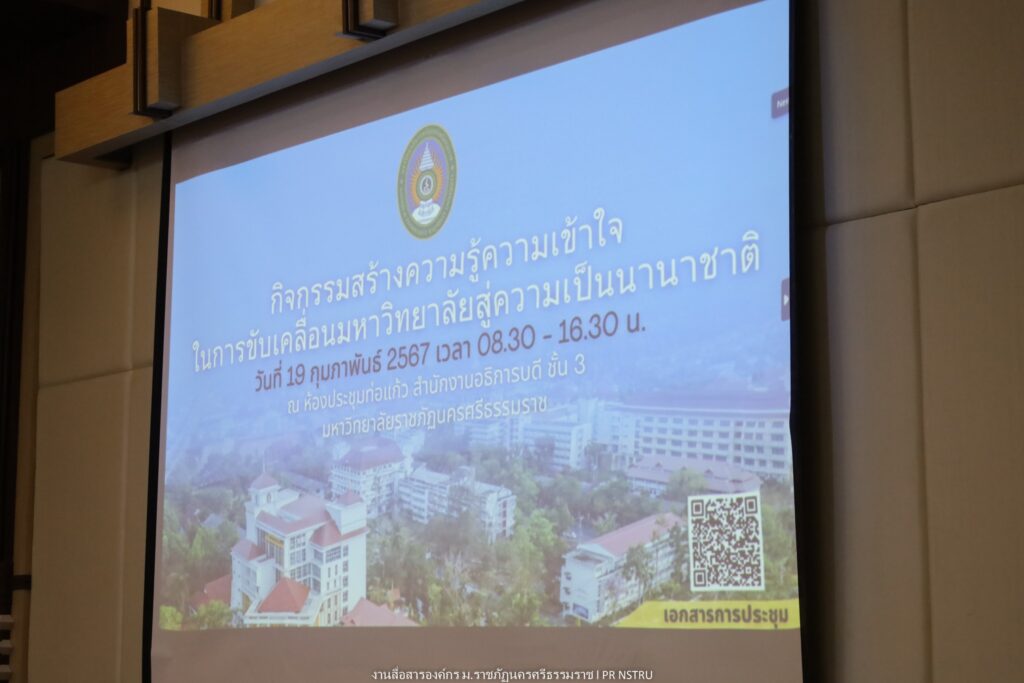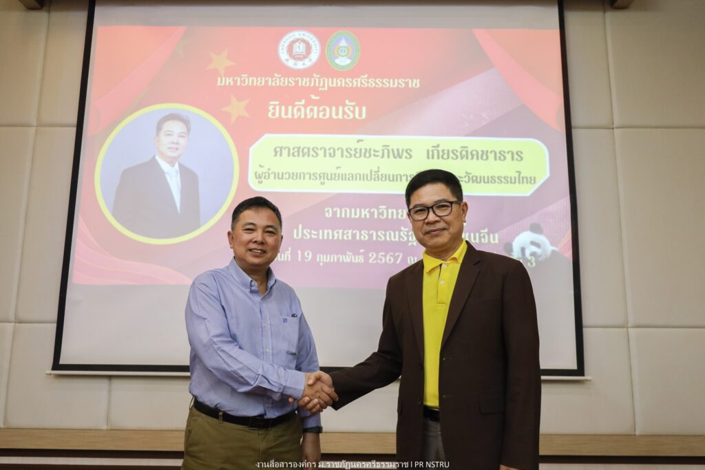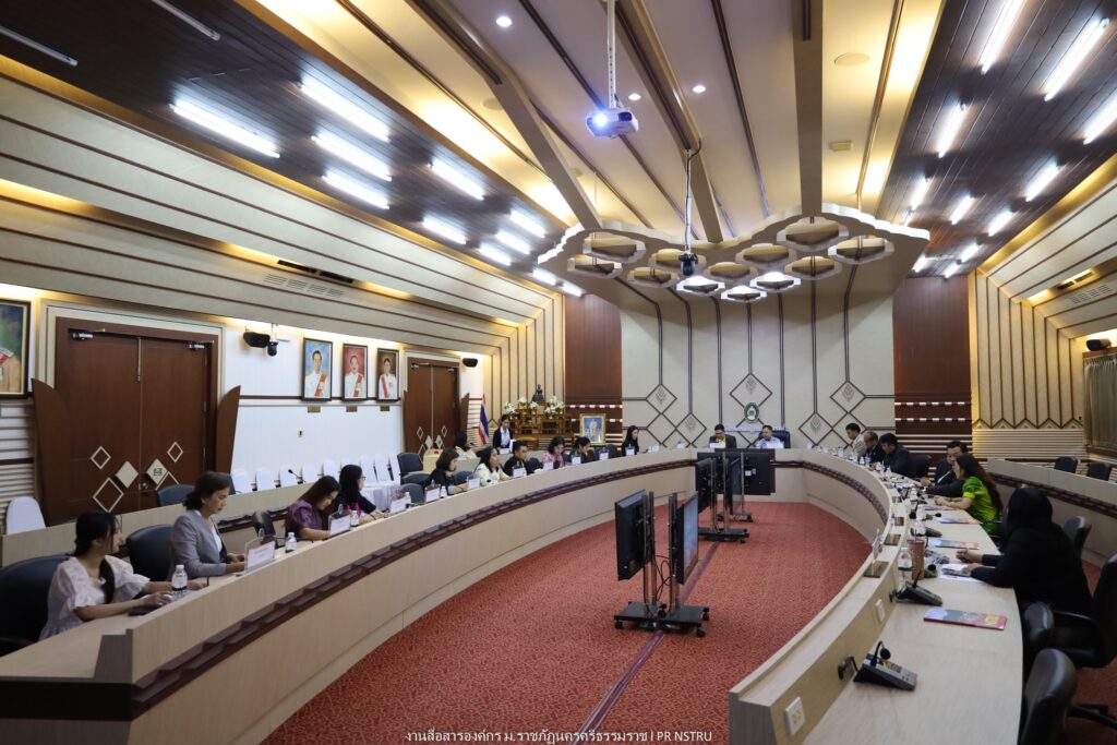 On February 19, 2024, at 9:00 a.m., Nakhon Si Thammarat Rajabhat University (NSTRU) organized a training and knowledge-sharing activity titled “Strategies for Driving MOU Implementation under the Academic Exchange Program for Students, Lecturers, and Researchers with Partner Institutions” at the Thorkaew Meeting Room, Office of the President.
