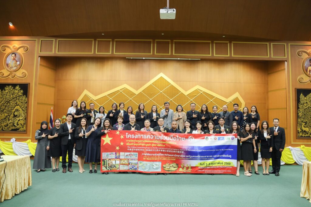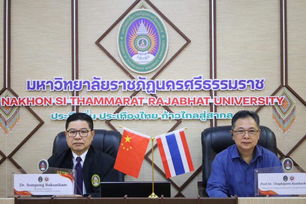 In addition, the meeting addressed Thai–Chinese research collaboration focusing on the management of cultural capital in Nakhon Si Thammarat City to create added value for the global market, as well as the organization of international academic activities and research presentations by researchers from Nakhon Si Thammarat Rajabhat University.