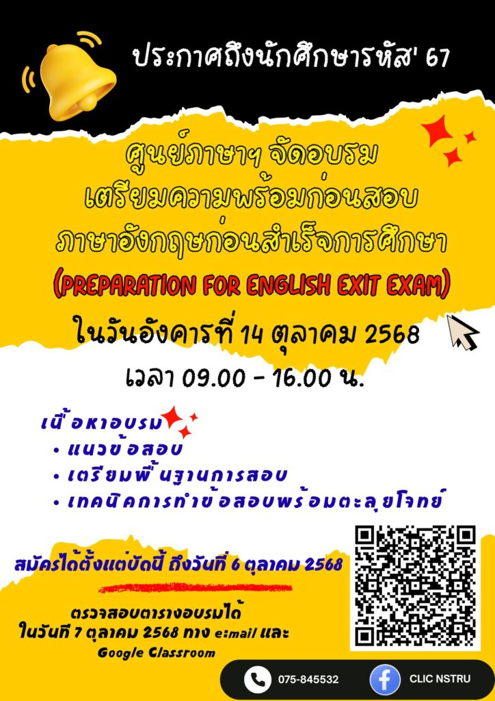 - For the English Knowledge Comprehensive Examination, contact Ms. Pimphorn Makphan (P’ Paen), Language Center, 1st Floor, Building 19.