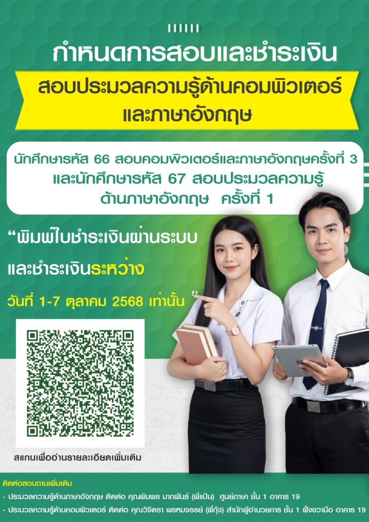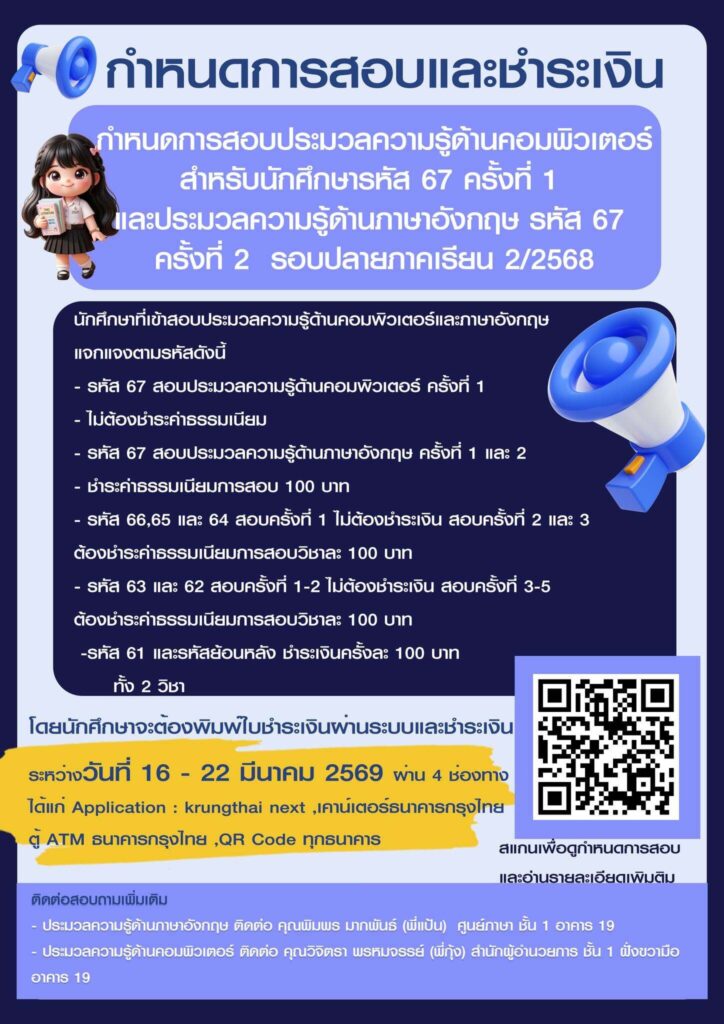 Schedule for the Computer Knowledge Comprehensive Examination (1st Attempt) and the English Knowledge Comprehensive Examination (2nd Attempt) for Students with Student ID Code 67, at the End of Semester 2, Academic Year 2025.